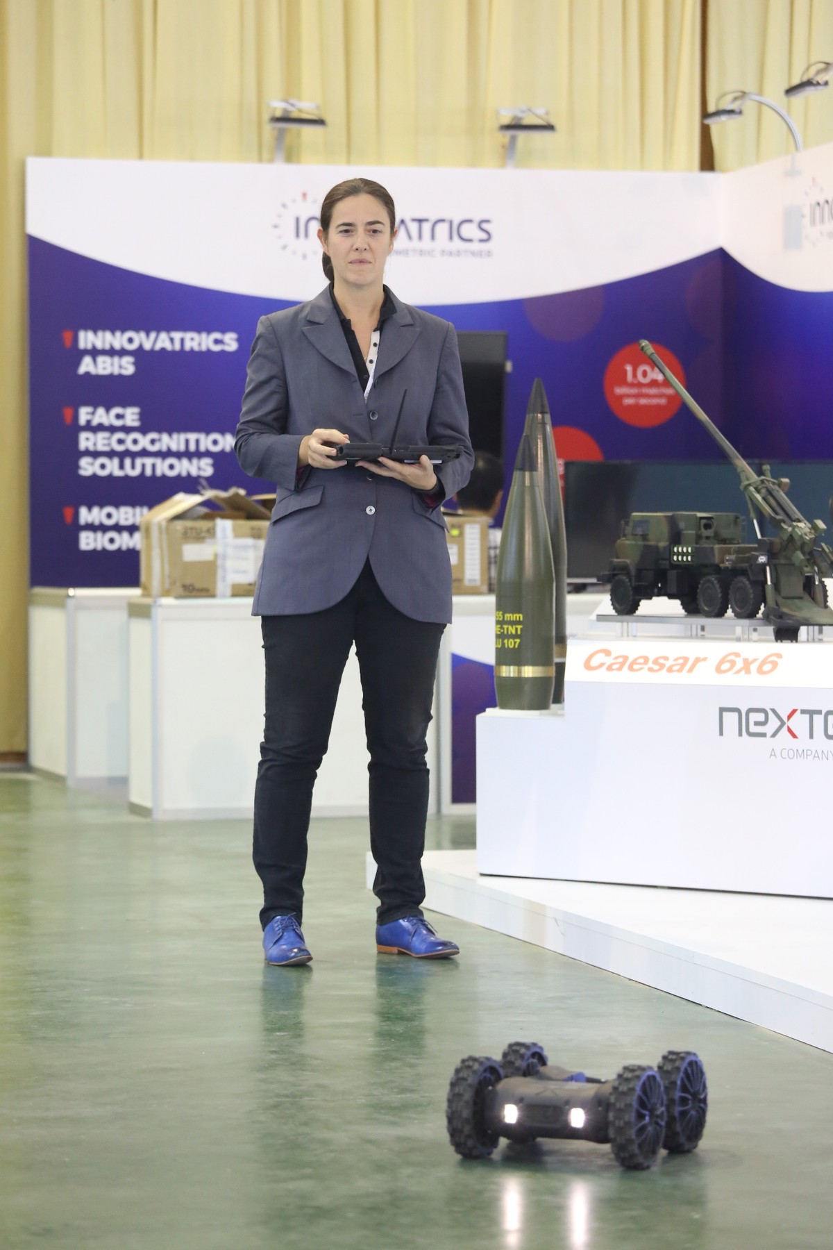 Đại diện công ty an ninh đến từ Pháp biểu diễn lái thử thiết bị điều khiển từ xa có khả năng phá bom, tiêu diệt kẻ địch...