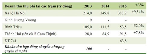 Báo cáo tài chính năm 2015 cho thấy cả 4 công ty này đều “ăn nên làm ra” với các trạm thu phí BOT rải từ Bắc vào Nam. Do vậy, mặc dù hạ tầng giao thông không phải là lĩnh vực kinh doanh duy nhất, nhưng các doanh nghiệp đều chú trọng đến lĩnh vực này trong kế hoạch kinh doanh năm 2016 và các năm tới.