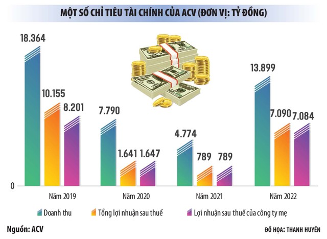 Lợi nhuận trước thuế năm 2022 của ACV đạt 7.574 tỷ đồng, đạt 295,17% so với kế hoạch, bằng 1026,28% so với thực hiện năm 2021.