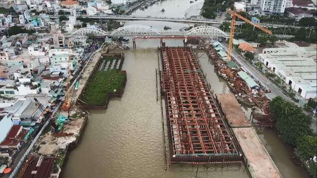 Cống Cây Khô huyện Bình Chánh hiện đã hoàn thành được 60 tiến độ. Cống với 4 bộ của van âu thuyền rộng 15x9m, 2 bộ cửa van cống và 3.040 tấn thép.