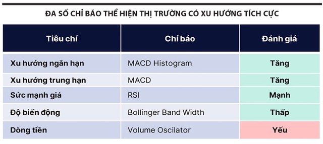 Thời gian tới, quá trình đi lên của thị trường có lẽ sẽ gặp trúc trắc, vì chúng tôi vẫn chưa thấy được sự mạnh mẽ của dòng tiền qua nhiều phiên. Thực tế, rất khó để thay đổi tình trạng này, do hiệu ứng cận Tết Âm lịch. Tuy vậy, chỉ cần 4/5 tiêu chí kỹ thuật tích lũy cũng đủ để thị trường duy trì trạng thái tích cực.