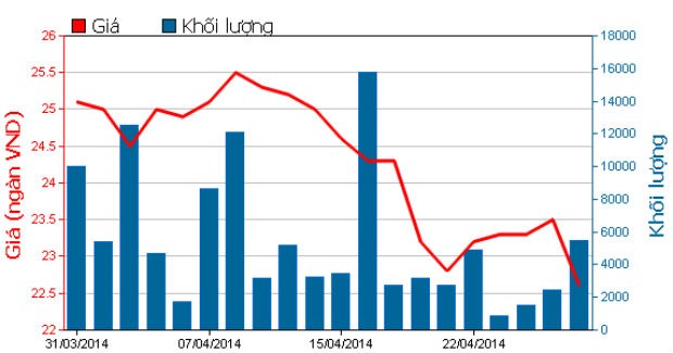 Tại phiên 29/4, cổ phiếu SRC đang tiếp tục giảm 400 đồng xuống 22.200 đồng.