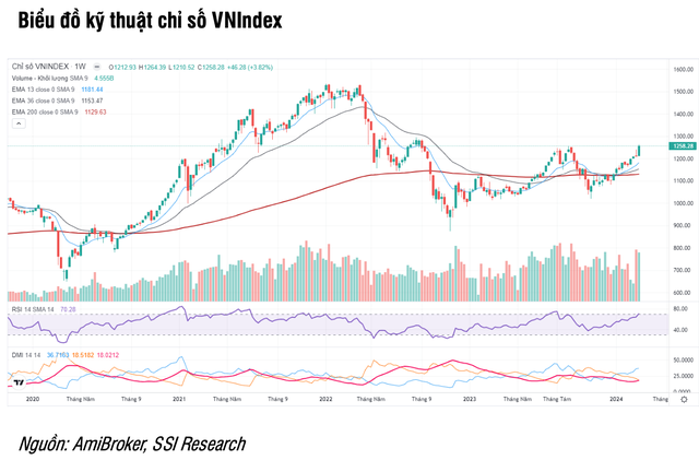 Ngoài ra, lãi suất tiếp tục duy trì mức thấp, xu hướng phục hồi lợi nhuận tiếp tục trong quý đầu năm 2024 và kế hoạch vận hành hệ thống giao dịch KRX chuyển biến cụ thể hơn gần đây là các yếu tố hỗ trợ SSI đánh giá thị trường chỉ có thể chỉ diễn ra các nhịp điều chỉnh nhanh và sớm quay lại xu hướng tăng chính, nhưng bước tăng sẽ chậm lại và rủi ro biến động sẽ diễn ra thường xuyên hơn.