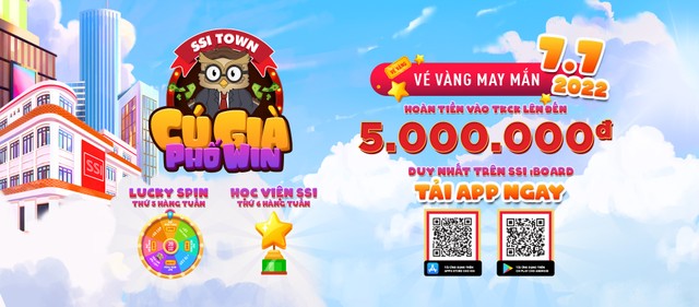 Tổng giá trị giải thưởng cho các sự kiện được tổ chức tại SSI Town đến 30/9 dự kiến lên tới 800 triệu đồng, trong đó có nhiều hình thức trả thưởng hấp dẫn như hoàn 5 triệu đồng vào tài khoản chứng khoán, nạp ngay 200 nghìn vào điện thoại…