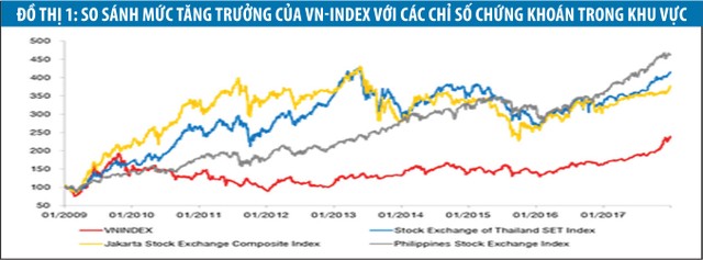 Qua đó, Việt Nam được đánh giá là một trong những quốc gia có GPD tăng trưởng tốt nhất trong khu vực. Một yếu tố khác là mặc dù TTCK Việt Nam tăng mạnh nếu tính từ sau khủng hoảng vào năm 2008, nhưng mức tăng vẫn thấp hơn các nước trong khu vực (xem Đồ thị 1)
