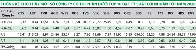 Sự khởi sắc của các công ty có vị trí nằm dưới Top 10 thể hiện rõ nét từ quý IV/2020. Trong quý cuối năm ngoái, VDS ghi nhận doanh thu hoạt động 203,4 tỷ đồng, lợi nhuận trước thuế 130 tỷ đồng, lũy kế cả năm đạt lần lượt 454,4 tỷ đồng và 192,7 tỷ đồng (lợi nhuận cao nhất trong các năm hoạt động).