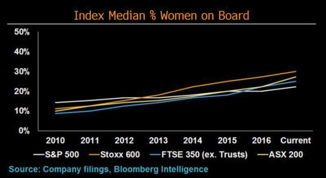 Năm 2017, có 6 quỹ tập trung vào giới được thành lập, với giá trị tài sản tăng 50% lên mức gần 720 triệu USD và động lực tăng trưởng này nhiều khả năng sẽ tiếp tục lớn mạnh. Hiện tại, State Street’s Gender Diversity ETF, với 316 triệu USD tài sản là quỹ đầu tư tập trung vào giới tính lớn nhất thế giới.