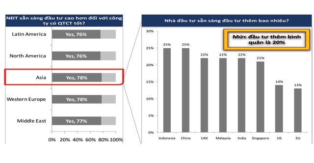 Mức độ sẵn sàng của nhà đầu tư vào doanh nghiệp có quản trị công ty tốt. Nguồn: Khảo sát quan điểm các nhà đầu tư toàn cầu về quản trị công ty của McKinsey, 2002; được kiểm chứng thông qua phỏng vấn, 2005.