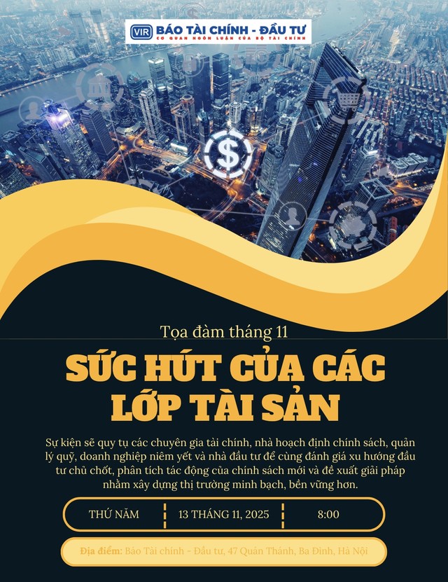 Tiếp nối tinh thần “Kỷ nguyên mới, Sức bật mới” của Diễn đàn Cấp cao Cố vấn tài chính Việt Nam lần thứ ba - năm 2025 (VWAS) vừa qua, Tọa đàm tháng 11 với chủ đề “Sức hút của các lớp tài sản” sẽ tiếp tục tập trung nhìn lại bức tranh toàn cảnh thị trường tài chính - đầu tư năm 2025, đồng thời dự báo xu hướng và chiến lược cho giai đoạn 2026 trong bối cảnh hội nhập sâu rộng và chuyển đổi số mạnh mẽ.