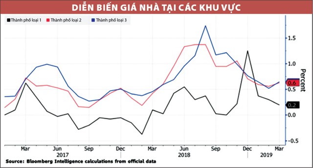 Thực tế, các thành phố nhỏ đã chứng kiến đà tăng giá nhà mạnh hơn so với các thành phố lớn trong thời gian qua, theo số liệu chính thức từ các cơ quan quản lý tại Trung Quốc, dù giá nhà nhìn chung đã chịu ảnh hưởng tiêu cực từ mối lo ngại về cuộc chiến tranh thương mại Mỹ - Trung vào cuối năm ngoái. Giá nhà leo dốc rõ rệt hơn tại các thành phố loại 2 và 3, nơi chính quyền địa phương đã bắt đầu nới lỏng các quy định hạn chế mua nhà.