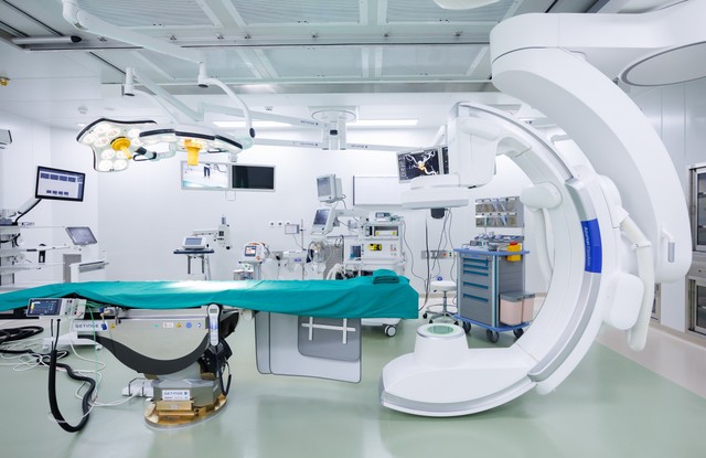 Hệ thống 04 phòng mổ của bệnh viện được tư vấn và thiết kế bởi Maquet Getinge Group (Đức), đủ tiêu chuẩn cho việc ghép tạng. Đặc biệt 01 phòng mổ Hybrid được trang bị hệ thống máy DSA của Philips ứng dụng công nghệ trí tuệ nhân tạo Rapid (Mỹ) giúp kiểm soát tối ưu giờ vàng trong đột quỵ.