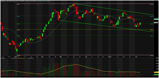 Nếu vượt, tiếp theo sẽ là kênh giá với độ dốc lớn từ đỉnh tháng 4/2018 đang là ngưỡng kháng cự kiểu “thuốc thử liều cao” của chỉ số. Hy vọng kênh này sai, ngược lại thì tầm 980 điểm có thể là đích đến cao nhất của VN-Index ở giai đoạn này.