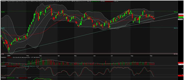 Kết phiên giao dịch ngày 10/9/2019, VN-Index chốt ở 970,26 điểm, giảm -3,86 điểm (-0,4%) với khối lượng giao dịch khớp lệnh đạt 128 triệu đơn vị, giá trị 2.787 tỷ đồng.