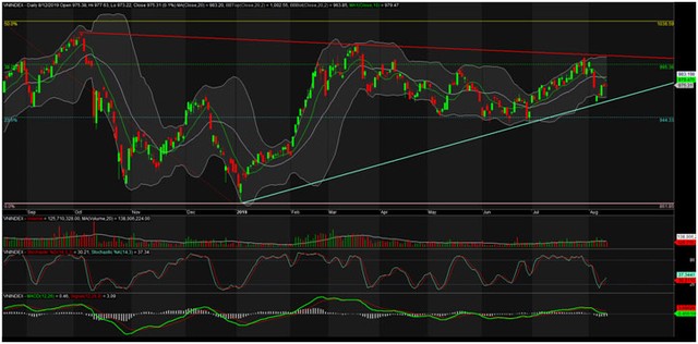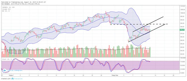 Kết phiên giao dịch ngày 12/8/2019, VN-Index chốt ở 975,31 điểm, tăng 0,97 điểm (+0,1%) với khối lượng giao dịch khớp lệnh đạt 126 triệu đơn vị, giá trị 2.627 tỷ đồng.
