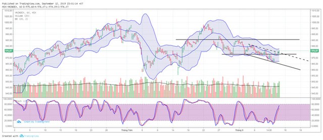 Kết phiên giao dịch ngày 12/9/2019, VN-Index chốt ở 976,07 điểm, tăng 6,76 điểm (+0,7%) với khối lượng giao dịch khớp lệnh đạt 123 triệu đơn vị, giá trị 2.779 tỷ đồng.