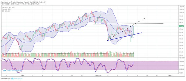 Kết phiên giao dịch ngày 15/8/2019, VN-Index chốt ở 979,38 điểm, tăng 10,47 điểm (+1,08%) với khối lượng giao dịch khớp lệnh đạt 131 triệu đơn vị, giá trị 2.796 tỷ đồng.