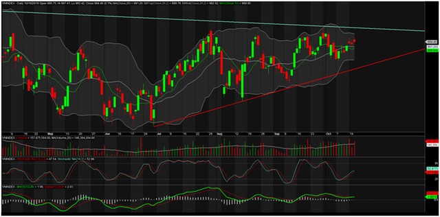 Kết phiên giao dịch ngày 16/10/2019, VN-Index chốt ở 994,46 điểm, tăng 1,41 điểm (+0,14%) với khối lượng giao dịch khớp lệnh đạt 158 triệu đơn vị, giá trị 2.859 tỷ đồng.