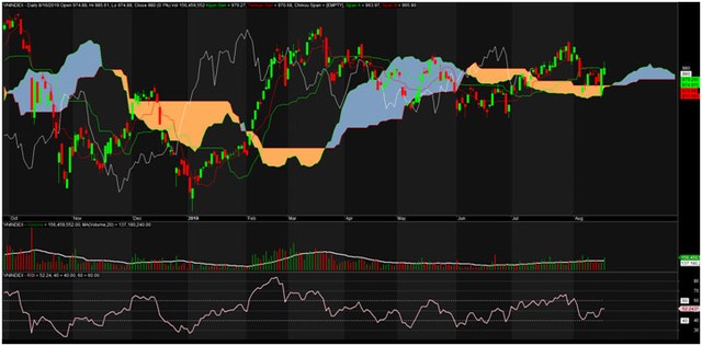 Với hệ thống Ichimoku, đường Tenkan vẫn nằm dưới Kijun là tín hiệu không mấy tốt đẹp. Mặc dù giá đã ở trên cả 2 đường này, nhưng như thế vẫn chưa đủ tin cậy và chưa hoàn hảo. Nhiều khả năng, VN-Index cần thêm thời gian tích lũy thêm, củng cố nền giá quanh 98x cho chắc chắn làm bệ phóng cho nhịp tăng mạnh hơn trong tương lai.