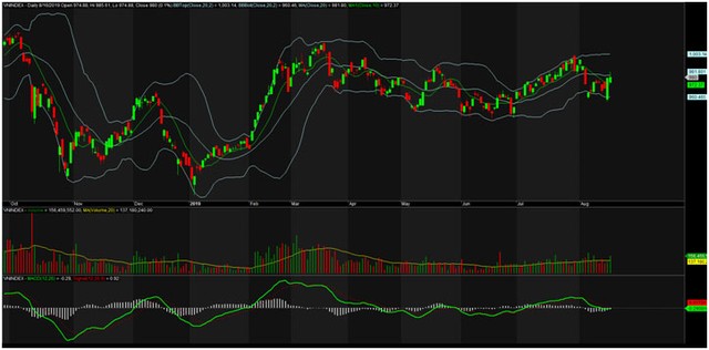 Kết phiên giao dịch ngày 16/8/2019, VN-Index chốt ở 980 điểm, tăng 0,62 điểm (+0,06%) với khối lượng giao dịch khớp lệnh đạt 156 triệu đơn vị, giá trị 3.754 tỷ đồng.