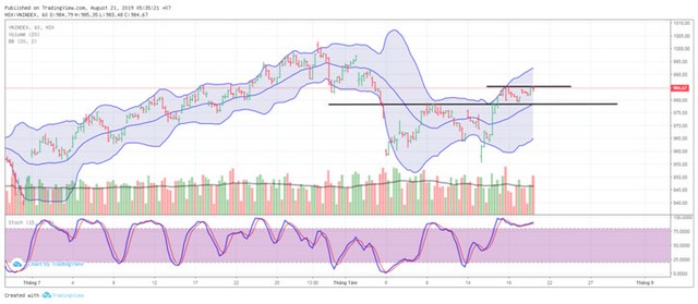 Kết phiên giao dịch ngày 20/8/2019, VN-Index chốt ở 984,67 điểm, tăng 3,64 điểm (+0,37%) với khối lượng giao dịch khớp lệnh đạt 121 triệu đơn vị, giá trị 2.792 tỷ đồng.