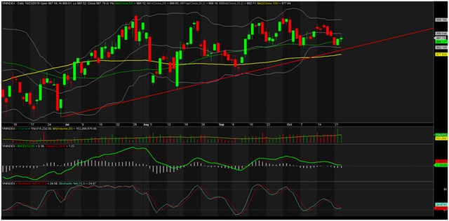 Cuộc chiến có vẻ đang thiếu vắng những BBs (tay to) hay MMs (tạo lập). Tất cả dường như đang chờ đợi cuộc họp của Fed sẽ diễn ra vào cuối tháng này (30, 31/10). Nếu đúng vậy, thì chỉ số đi ngang còn chán và rất ít hy vọng cho 1 cú bứt mạnh về phía 1.000 điểm của thị trường trước khi tháng 10 kết thúc.