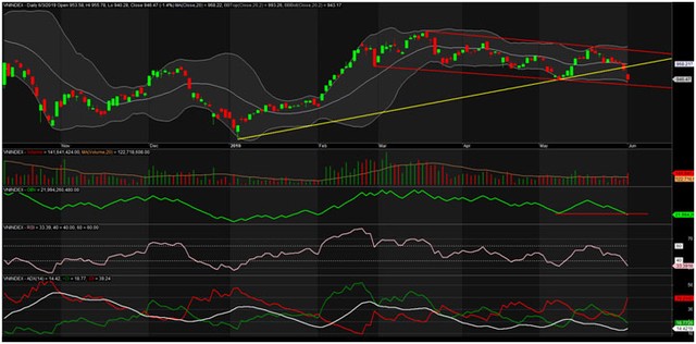 Kết phiên giao dịch ngày 3/6/2019, VN-Index chốt ở 946,47 điểm, giảm mạnh 13,41 điểm (-1,4%) với khối lượng giao dịch khớp lệnh đạt 142 triệu đơn vị, giá trị 3.166 tỷ đồng.