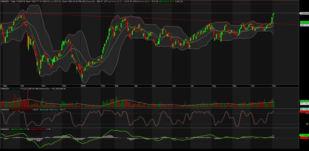 Kết phiên giao dịch ngày 05/11/2019, VN-Index chốt ở 1.024,34 điểm, tăng 1,91 điểm (+0,19%) với khối lượng giao dịch khớp lệnh đạt 172 triệu đơn vị, giá trị 3.663 tỷ đồng.