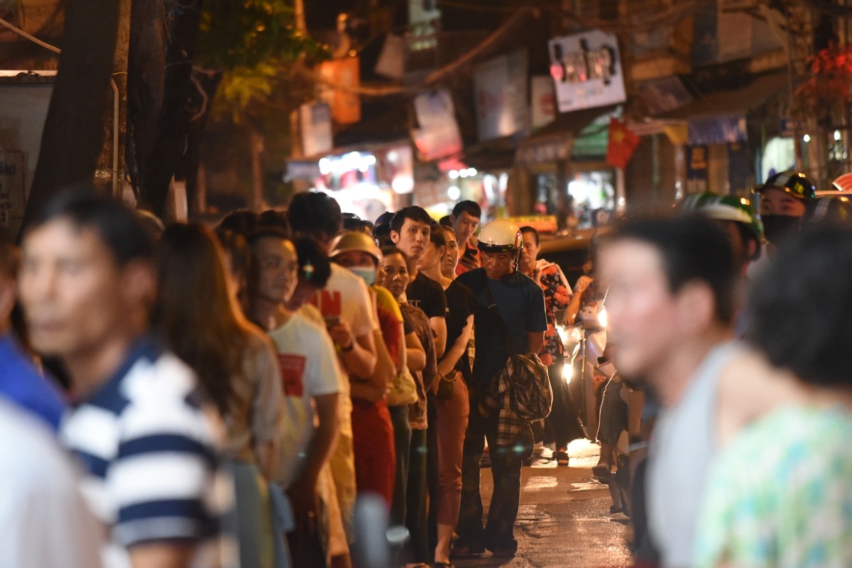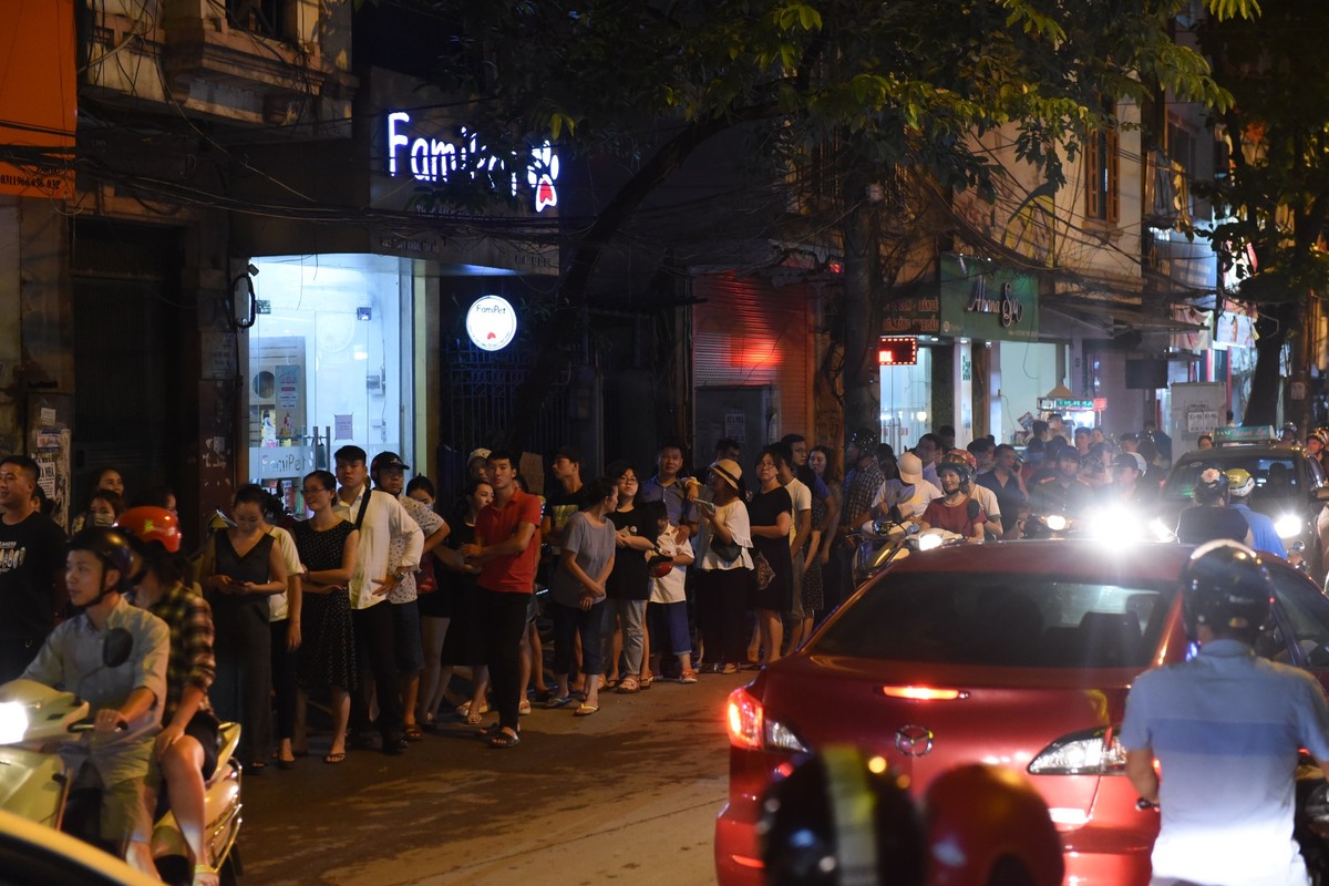 Hàng người xếp hàng chờ đợi cách hiệu bánh đến cả trăm mét.