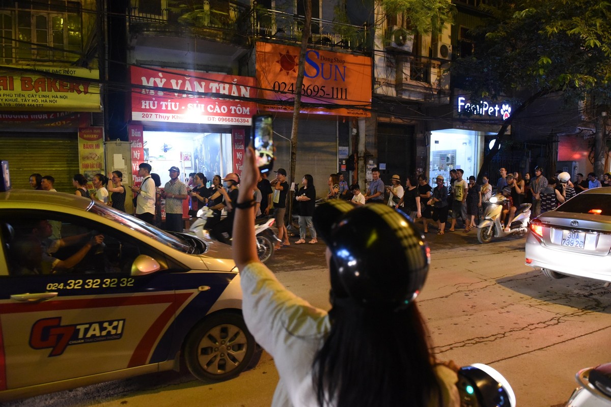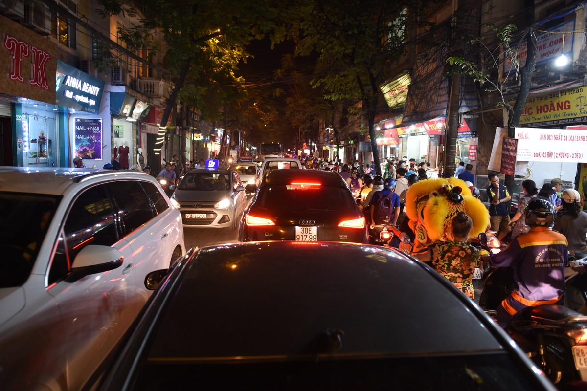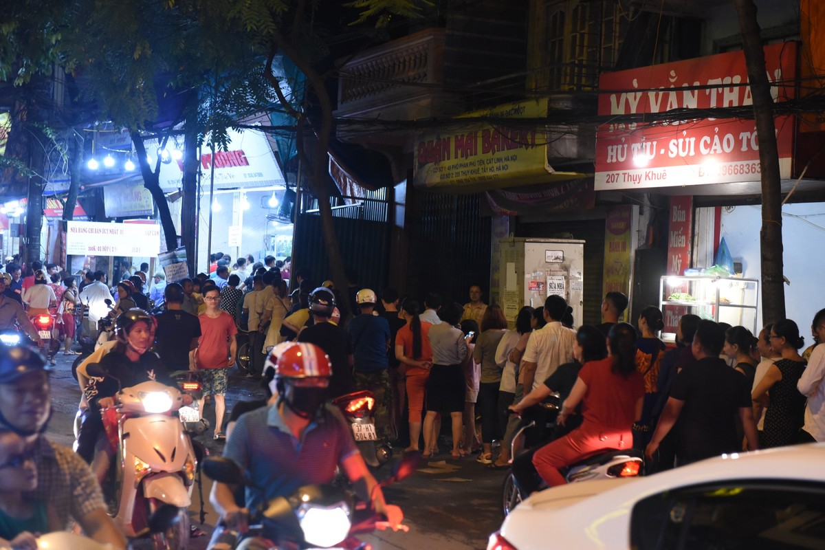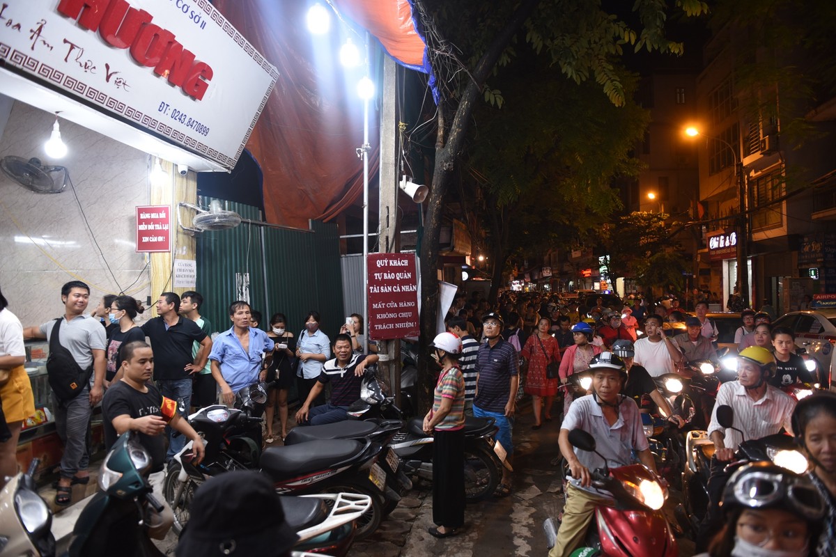 Tắc đường cả trong lẫn ngoài một hiệu bánh có tiếng trên phố Thụy Khuê vào tối 11/9.