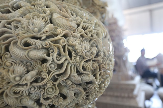 Ngoài “Tam Bảo Vĩnh Hằng” tại nhà xưởng của công ty Minh Đức ngay trên đường Tân Mai - Hà Nội còn rất nhiều tác phẩm chạm khắc đá tinh xảo