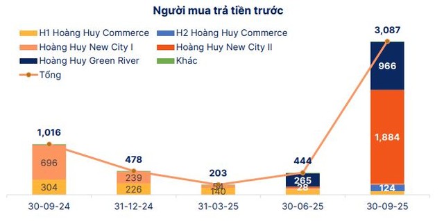Các dự án này đều có mức độ hấp thụ khá tốt và hiện đã bán được khoảng 30 - 40% tổng số sản phẩm. Tiến độ thu tiền của các dự án mới mở bán cũng duy trì khá tích cực. Báo cáo tài chính cho thấy số dư người mua trả tiền trước tại ngày 30/9/2025 đạt 3.087 tỷ đồng, tăng mạnh so với mức 444 tỷ đồng tại ngày 30/6/2025.