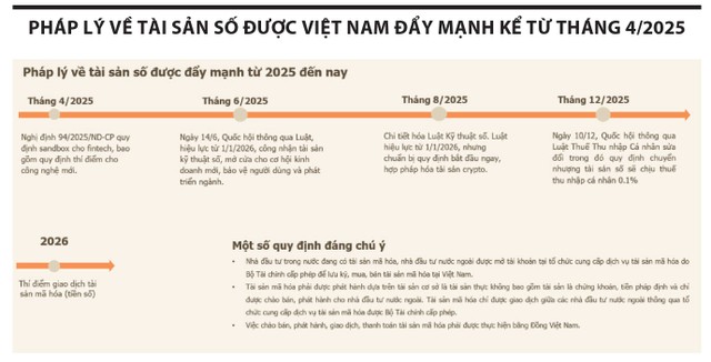 Trong dòng chảy toàn cầu ấy, câu chuyện tài sản số tại Việt Nam năm 2026 mang một sắc thái riêng - câu chuyện của một sự khởi đầu có định hướng. Việc Luật Công nghiệp Công nghệ số và Luật Thuế thu nhập cá nhân (sửa đổi) chính thức có hiệu lực từ đầu năm được xem như một “phát súng hiệu lệnh”, đưa Việt Nam từ vùng xám pháp lý trở thành quốc gia sở hữu hành lang pháp lý tương đối rõ ràng cho tài sản số. Việc công nhận sự tồn tại của tài sản số cùng mức thuế chuyển nhượng hợp lý (0,1%) đã góp phần tạo dựng niềm tin và khơi dậy sự hứng khởi của nhà đầu tư cũng như cộng đồng doanh nghiệp công nghệ trong nước.