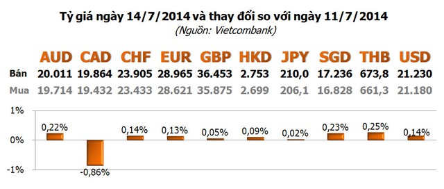 Các ngoại tệ khác, hầu hết tăng, nhưng đều không quá 0,25%, trong khi chỉ CAD giảm, nhưng giảm đến 0,86%.