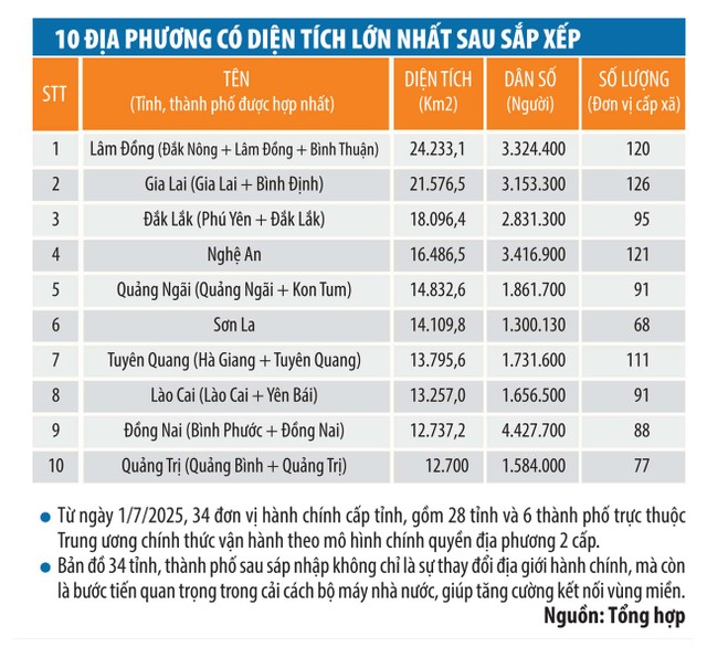 “Giang sơn” đã chính thức được sắp xếp lại, với 34 đơn vị hành chính cấp tỉnh, kể từ ngày 1/7/2025. Bước đi lịch sử có ý nghĩa chiến lược này sẽ tạo cơ hội để các địa phương tăng tốc phát triển, bắt đầu từ việc làm sao để tăng tốc tăng trưởng Tổng sản phẩm trên địa bàn (GRDP) nhằm đưa nền kinh tế đạt mức tăng trên 8% trong năm nay.