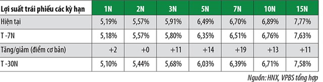 Lợi suất trái phiếu tiếp tục tăng tại các kỳ hạn, riêng lợi suất trái phiếu kỳ hạn 2 năm không thay đổi so với tuần trước đó.