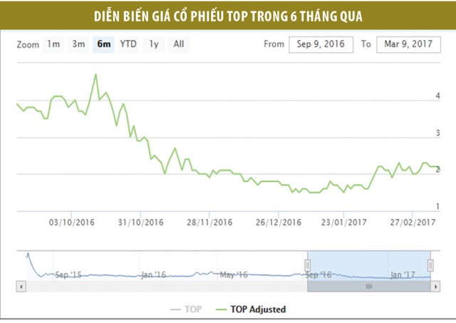 Tại TOP, năm 2016, với việc tăng vốn từ 39 lên 253,3 tỷ đồng, TOP cũng lên kế hoạch kinh doanh tăng đột biến, nhưng kết thúc năm, TOP chỉ hoàn thành 29% kế hoạch doanh thu và 34% mục tiêu lợi nhuận sau thuế, lần lượt là 101,7 tỷ đồng và 9,3 tỷ đồng.
