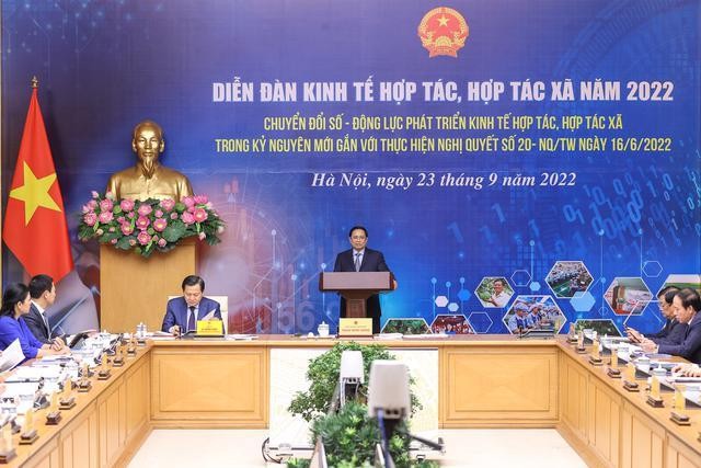Phát biểu khai mạc Diễn đàn, Thủ tướng Chính phủ Phạm Minh Chính đã khẳng định, chuyển đổi số trong lĩnh vực kinh tế hợp tác, hợp tác xã cần sớm được triển khai với tốc độ nhanh nhất có thể để đạt được mục tiêu chung về chuyển đổi số. Đặc biệt, chuyển đổi số trong các hợp tác xã nông nghiệp, cần ứng dụng công nghệ số để tự động hóa các quy trình sản xuất, kinh doanh, quản lý, giám sát nguồn gốc, chuỗi cung ứng sản phẩm, bảo đảm nhanh chóng, minh bạch, chính xác, an toàn, vệ sinh thực phẩm.