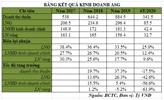 Bảng kết quả kinh doanh của ASG trong những năm qua