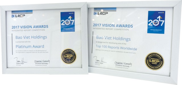 Hiệp hội Truyền thông chuyên nghiệp Hoa Kỳ (LACP) vừa vinh danh Tập đoàn Bảo Việt với 8 hạng mục giải thưởng dành cho Báo cáo thường niên, Báo cáo phát triển bền vững. Trong đó, nổi bật nhất là Top 14 Báo cáo thường niên xuất sắc nhất thế giới và 2 Giải Bạch kim cho Báo cáo thường niên tốt nhất trong ngành bảo hiểm - dịch vụ tài chính trong khu vực châu Á - Thái Bình Dương và trên toàn thế giới. Báo cáo phát triển bền vững của Bảo Việt cũng đạt giải Vàng cho Báo cáo tốt nhất trong ngành bảo hiểm - dịch vụ tài chính).