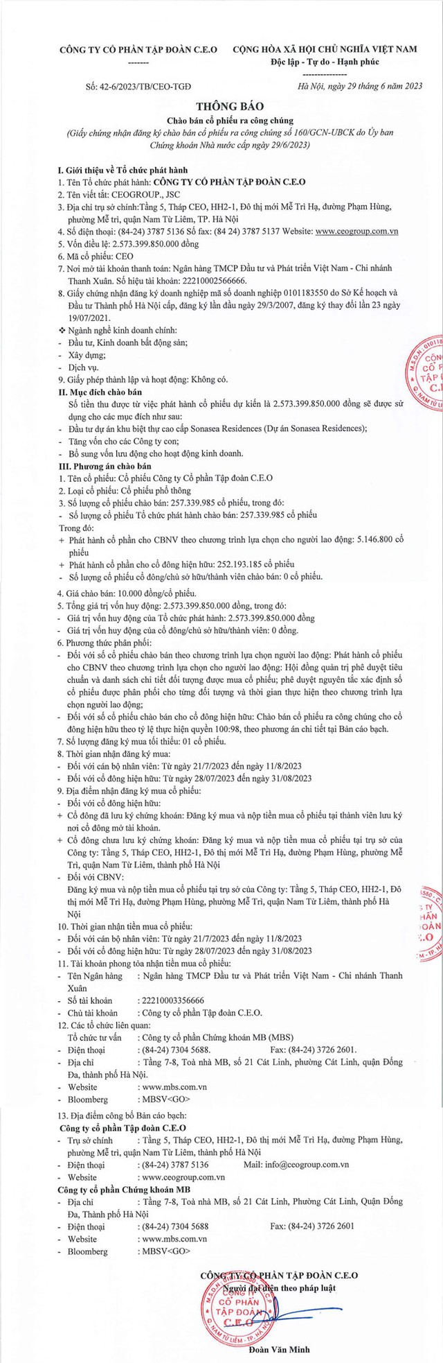 Công ty Cổ phần Xây dựng Coteccons (CTD) thông báo chào bán trái phiếu ra công chúng ( kỳ 1) 31/12/2025 19:00