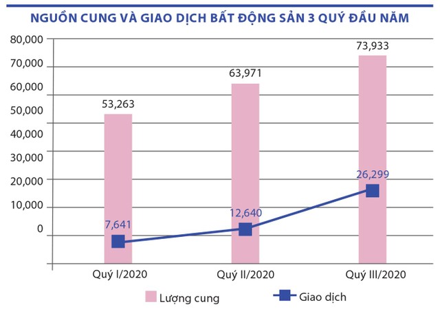 Nhận xét thị trường trầm lắng được chứng minh bằng con số khi tổng lượng giao dịch ghi nhận trên cả 2 thị trường chính là Hà Nội và TP.HCM theo số liệu của Hội Môi giới bất động sản Việt Nam (VARS) trong nửa đầu năm đạt chưa tới 20.000 giao dịch và chỉ bắt đầu tăng trở lại từ quý III/2020. Riêng quý III/2020, thanh khoản đạt hơn 26.300 giao dịch, cao hơn 2 quý trước cộng lại, chủ yếu là các sản phẩm chào bán từ quý trước hoặc bị trì hoãn.
