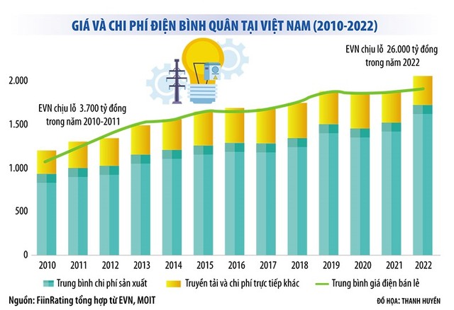 Theo Bộ Công thương, ước tính khoản lỗ của EVN là 26.000 tỷ đồng vào năm 2022, tương đương khoảng 10,5% tổng vốn chủ sở hữu của Tập đoàn tính đến năm 2021. Để giải quyết những vấn đề này, EVN đã tăng giá bán lẻ điện thêm 3% vào năm 2022, nhưng chỉ điều chỉnh giá điện vừa phải là không đủ để giải quyết tình trạng thua lỗ.