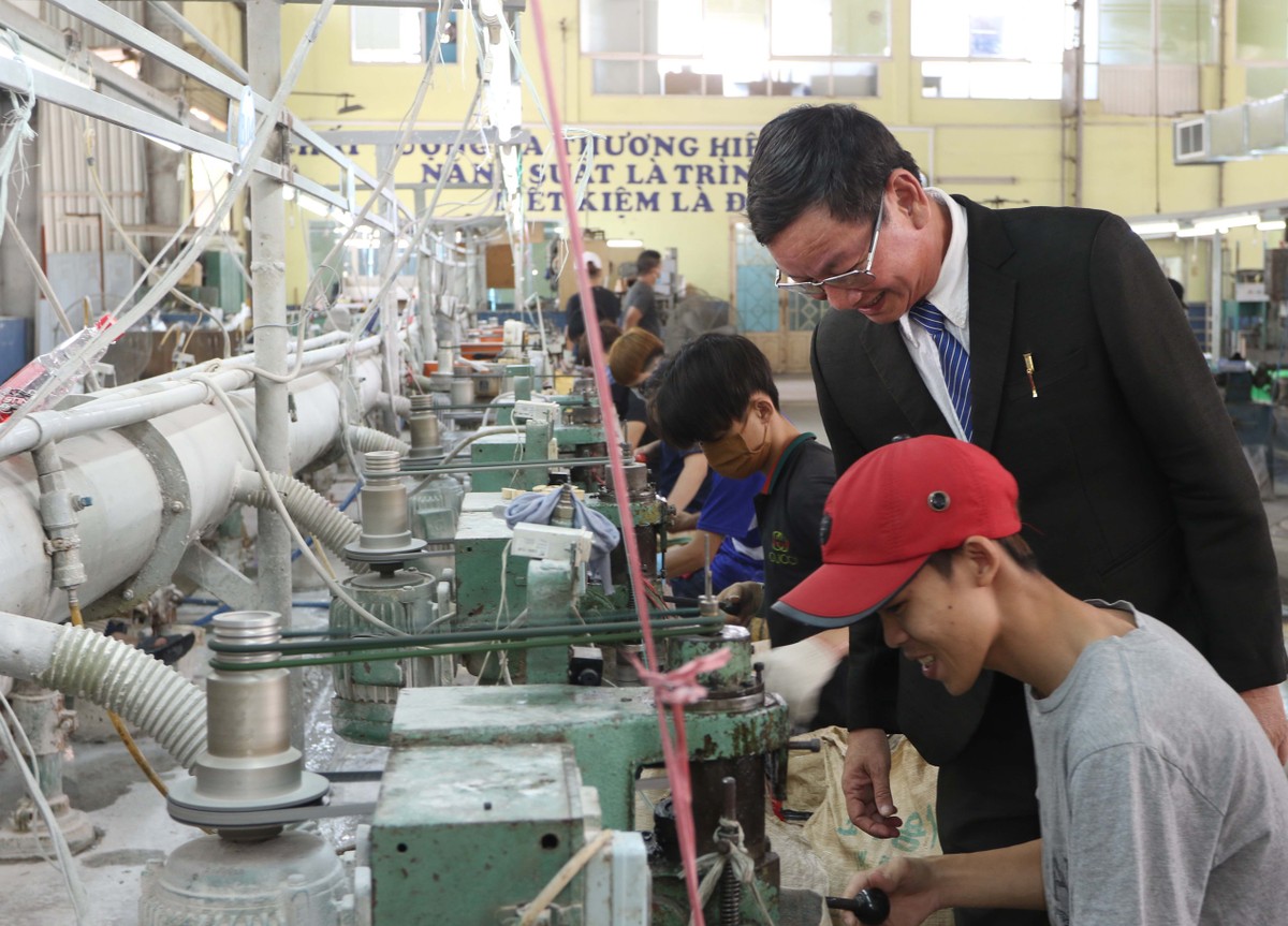 Ông Tôn Thạch Nghĩa, giám đốc công ty thường xuyên thăm hỏi công nhân. Vì đối với ông công nhân giai đoạn này là tài sản quý nhất.