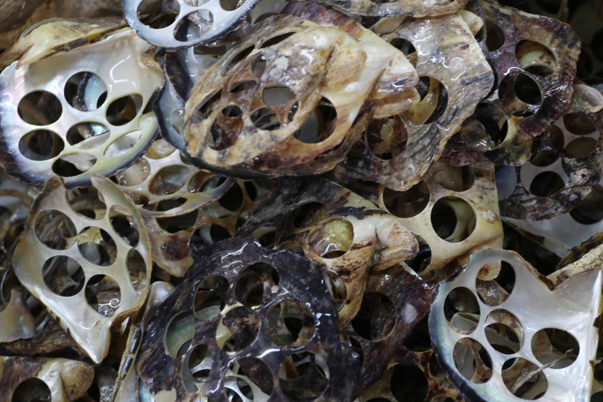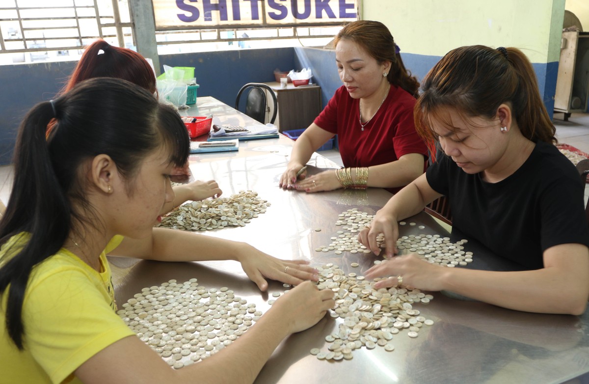 Nguyên liệu sò, trai để làm nút áo được nhập từ các vùng biển đẹp nhất thế giới.