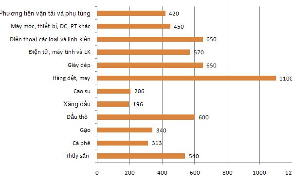 Kim ngạch xuất khẩu một số mặt hàng chủ lực