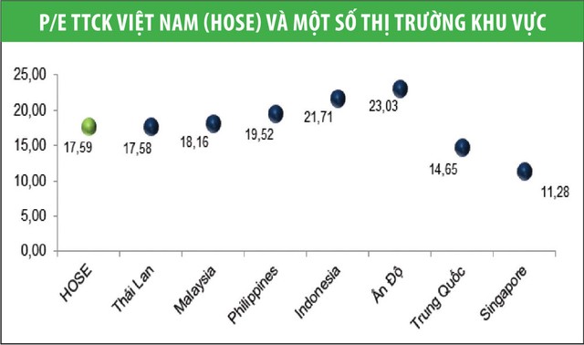 Cùng với đà lao dốc về điểm số, chỉ số P/E của thị trường Việt Nam điều chỉnh mạnh và hiện đã giảm xuống dưới mức 18 lần, so với mức 22 lần trước khi diễn ra đợt sụt giảm (ngày 9/4/2018).