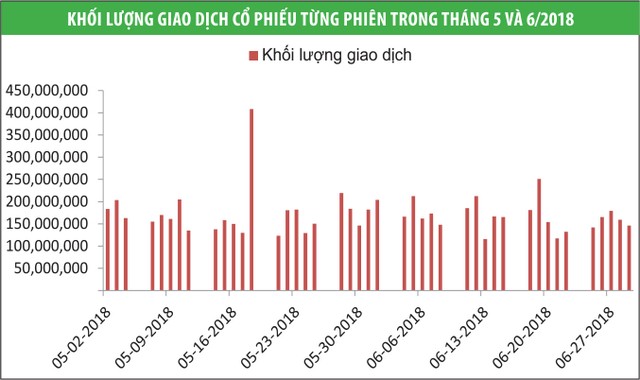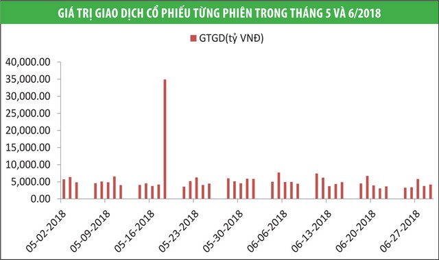 Thanh khoản TTCK trong tháng 6 khá yếu (xem Đồ thị) cho thấy, dòng tiền lớn đang đứng ngoài quan sát. Đáng chú ý, dư nợ margin trong tháng 6 của các công ty cũng giảm mạnh sau khi lập mức đỉnh ở tháng 4. Một số công ty chứng khoán lớn đã giảm dòng tiền margin từ mức 5.000 tỷ đồng xuống quanh mức 3.000 tỷ đồng, do nhà đầu tư giảm nhu cầu vay và cũng do CTCK cần giữ sự an toàn trong bối cảnh thị trường bất định.