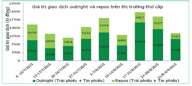 Tuần từ 31/8 - 4/9, 3.595 tỷ đồng giao dịch reverse repo được thực hiện trên thị trường mở và 14.850 tỷ đồng giao dịch reverse repo đáo hạn.