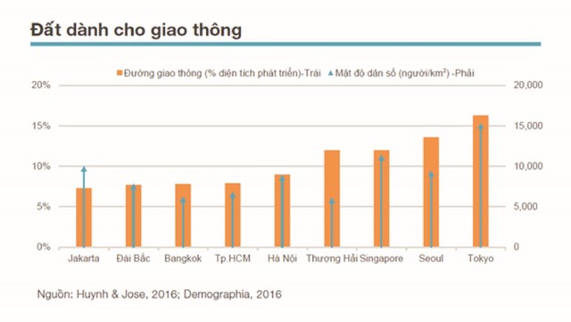 Hà Nội và TP.HCM dành chưa đến 9% diện tích đất đo thị cho giao thông.
