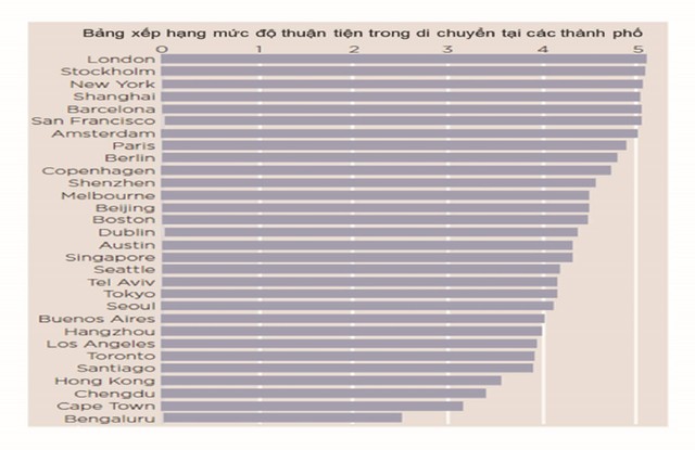 Các thành phố ở châu Âu chiếm ưu thế về mức độ thuận tiện trong di chuyển.